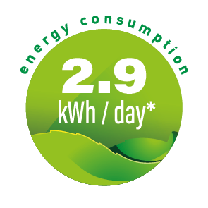 Dzięki wysoce korzystnemu zużyciu energii, dzienne zużycie zostało ekstremalnie zredukowane do 2,9 kWh w przypadku tego 5-osobowego modelu.