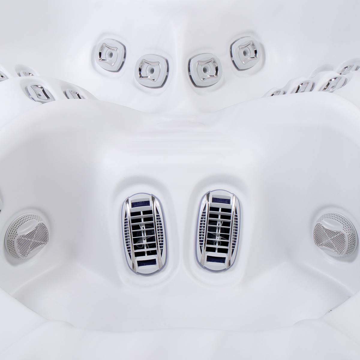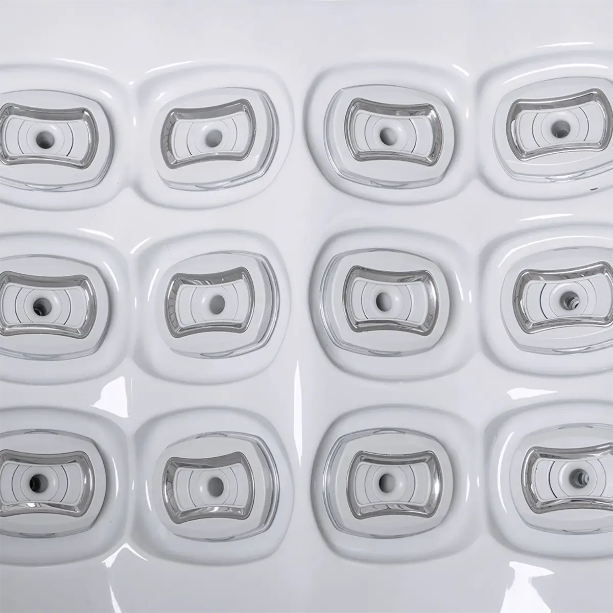 Maksymalna izolacja termiczna, minimalne zużycie energii. Bezszwowo zamontowane panele izolacyjne i kieszenie powietrzne w płycie podstawy skutecznie zatrzymują temperaturę wody, zapobiegając utracie ciepła. Wewnętrzna folia odbijająca ciepło odbija ciepło generowane przez silniki masażu, przyspieszając proces podgrzewania wody. Doświadcz niezrównanego komfortu i wydajności!
