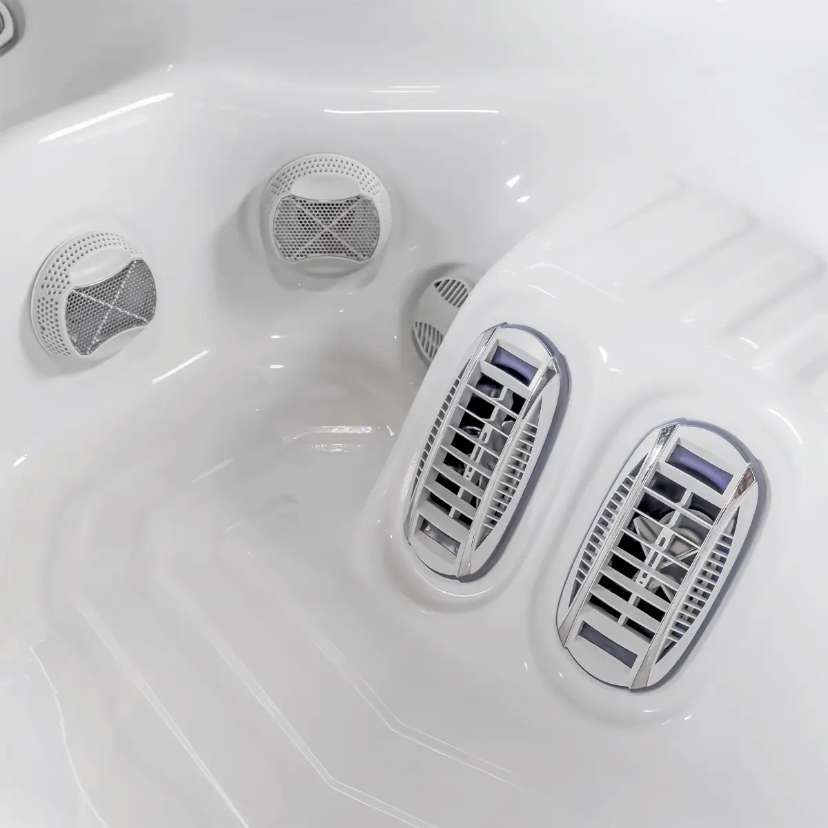 Maksymalna izolacja termiczna, minimalne zużycie energii. Bezszwowo zamontowane panele izolacyjne i kieszenie powietrzne w płycie podstawy skutecznie zatrzymują temperaturę wody, zapobiegając utracie ciepła. Wewnętrzna folia odbijająca ciepło odbija ciepło generowane przez silniki masażu, przyspieszając proces podgrzewania wody. Doświadcz niezrównanego komfortu i wydajności!